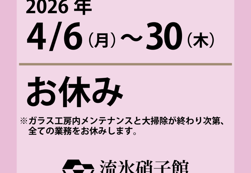 2026年4月6日(月)~30日(木)までお休みします。