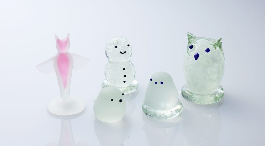 網走周辺で見られる生き物や風景をモチーフにしたガラス製の置き物シリーズです。白鳥、アザラシ、フクロウなど、地域ゆかりの動植物を愛らしいフォルムで表現しています。贈り物や記念品として、旅の思い出を手元に残せるアイテムです。